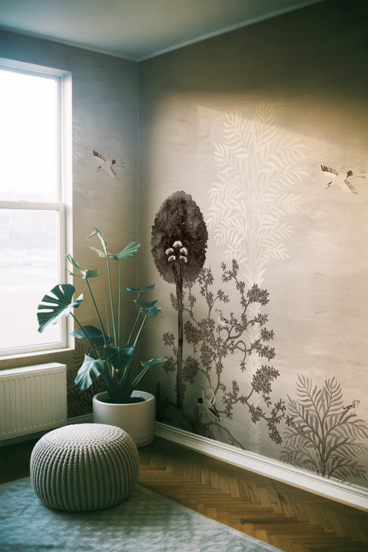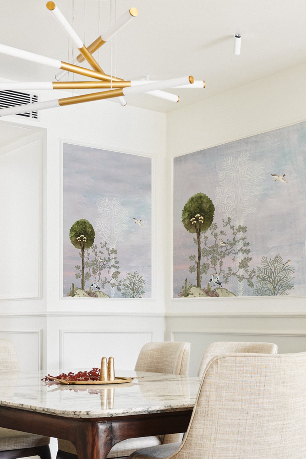 - Wallpaper is printed in multiple panels and parts