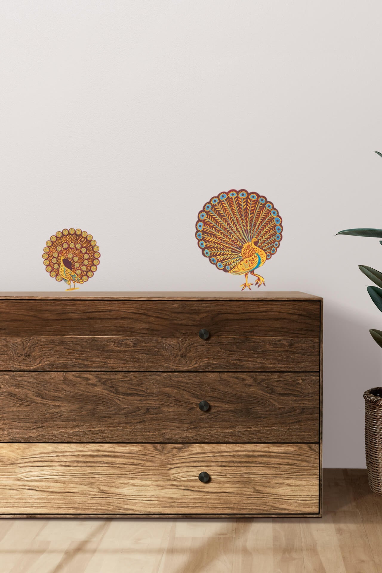 Celebrate the grace and beauty of peacocks with “Dance in the sun”. This Kalakaari Haath wall decal showcases golden peacocks in mid-dance, bringing life, movement and a splash of warmth to your decor. Transform plain walls with peacock-themed wall decor that combines sophistication with a hint of whimsy, capturing the essence of nature’s finest dancers.