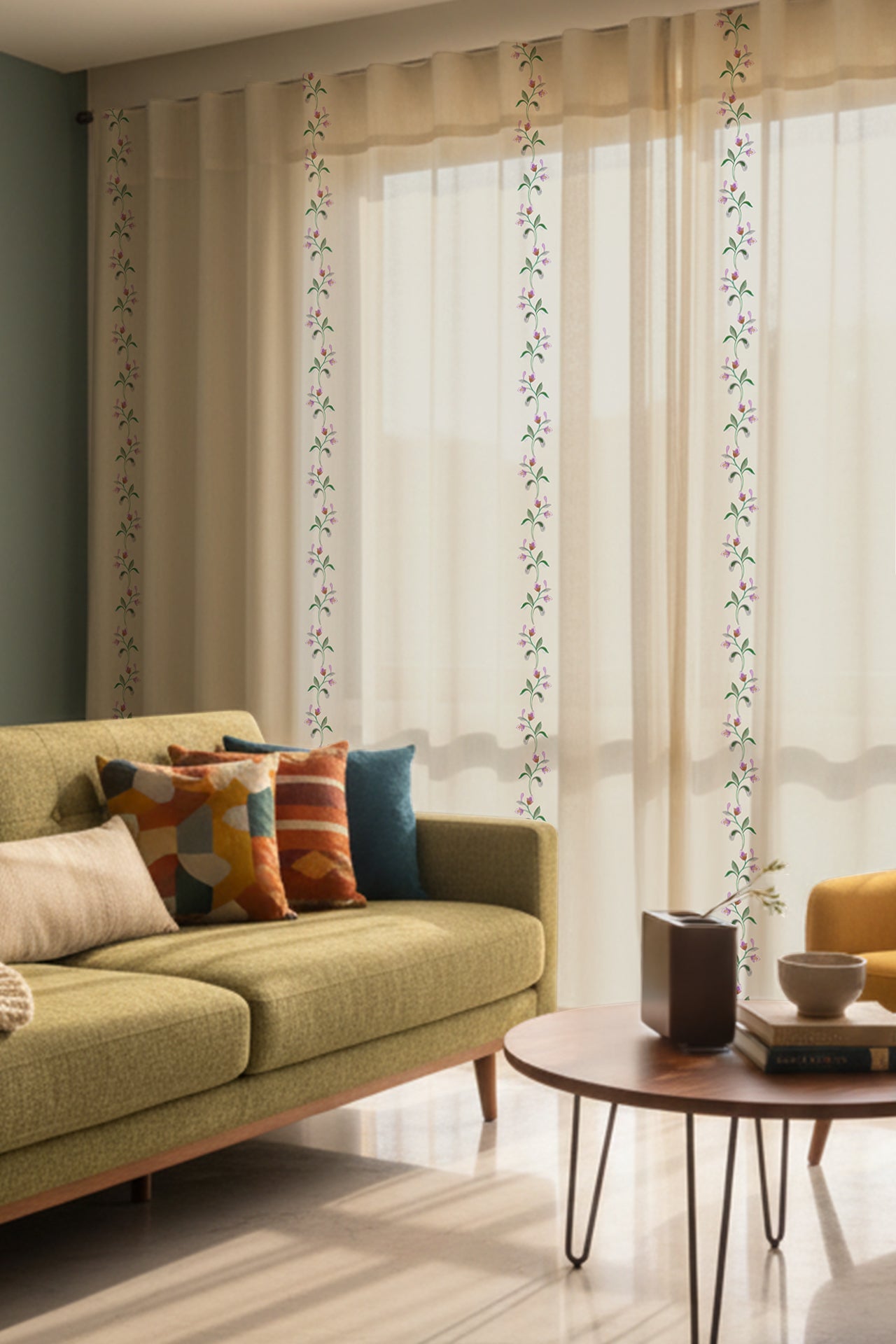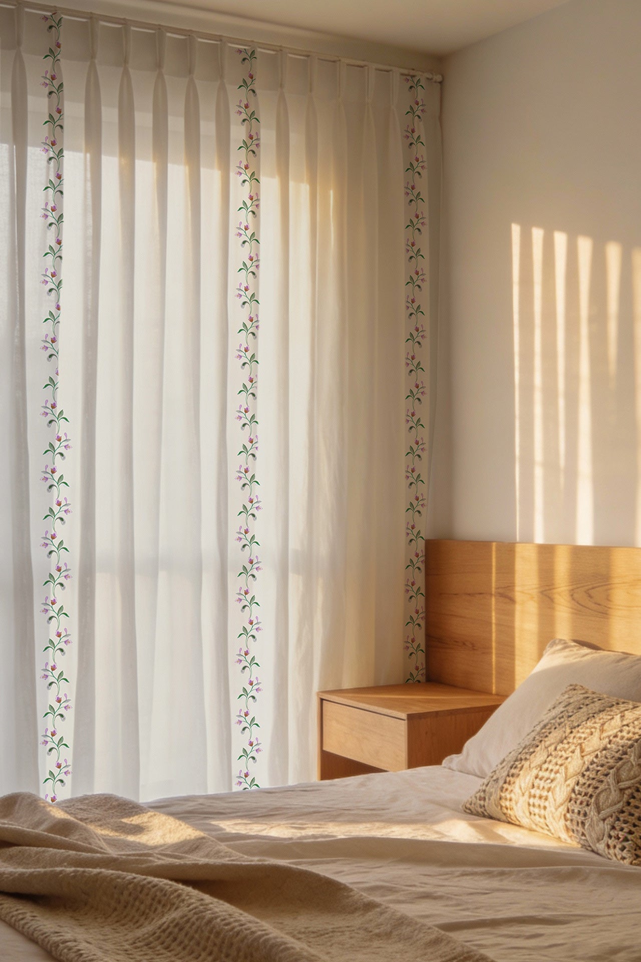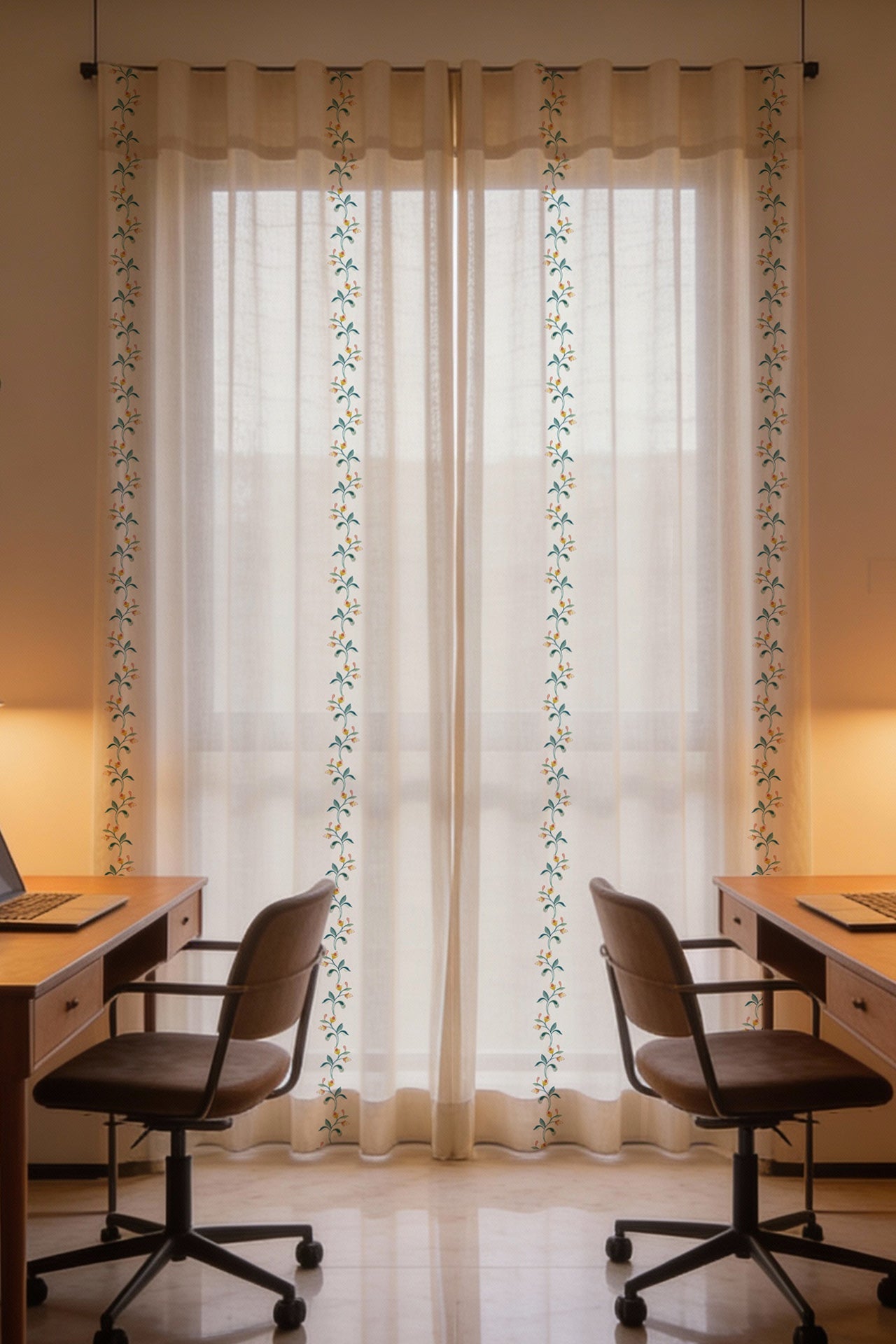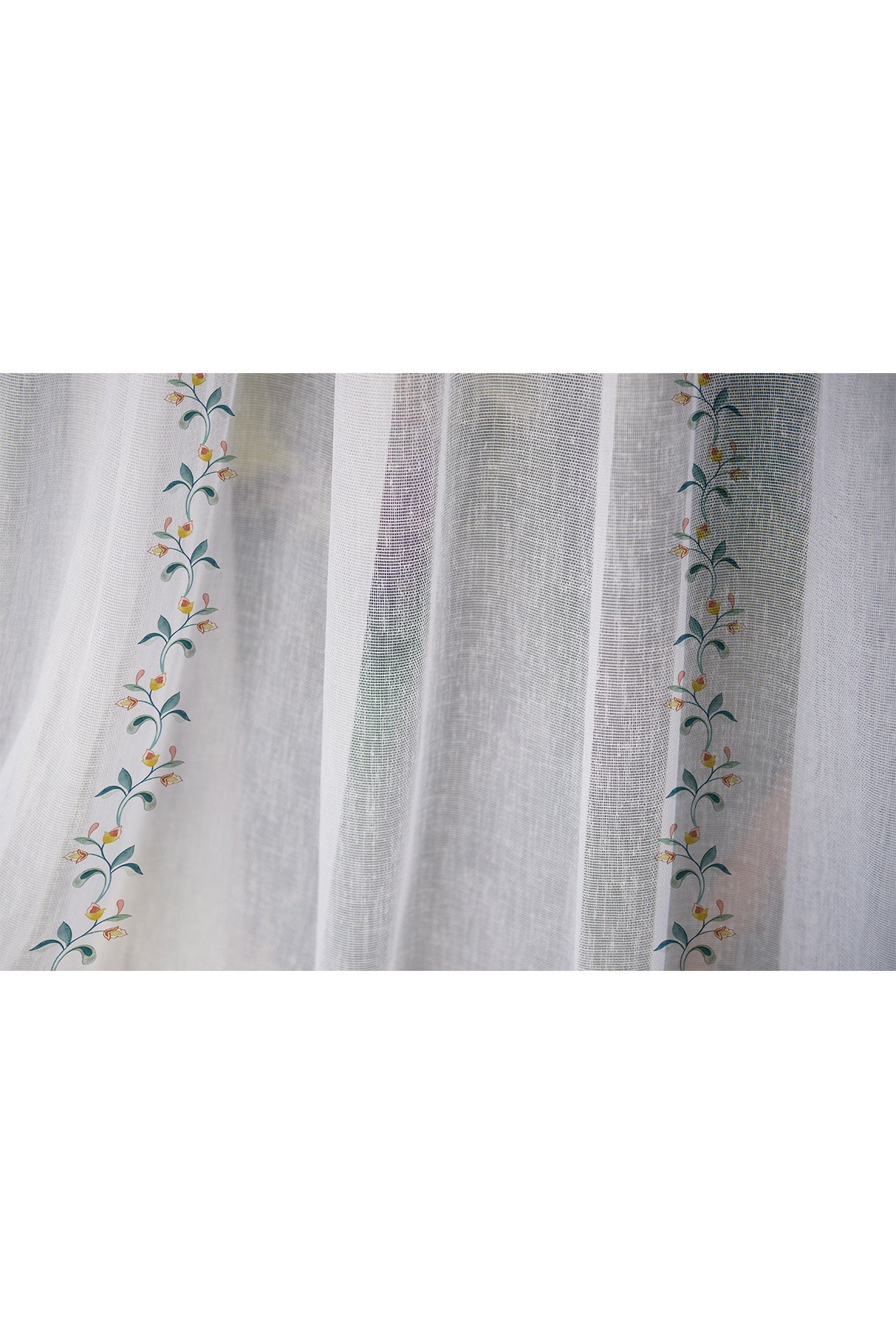 "Nothing enhances a space like the quiet elegance of floral patterns, and “Garlands of Bliss" sheer does just that. Crafted for those who love nature inspired decor, this piece adds a touch of whimsy while maintaining a refined aesthetic. Ideal for living room sheers, bedroom sheers or even a cosy cafe corner, its intricate design creates a warm and inviting atmosphere. Find your perfect sheers for sale at Kalakaari Haath, where every piece tells a story.