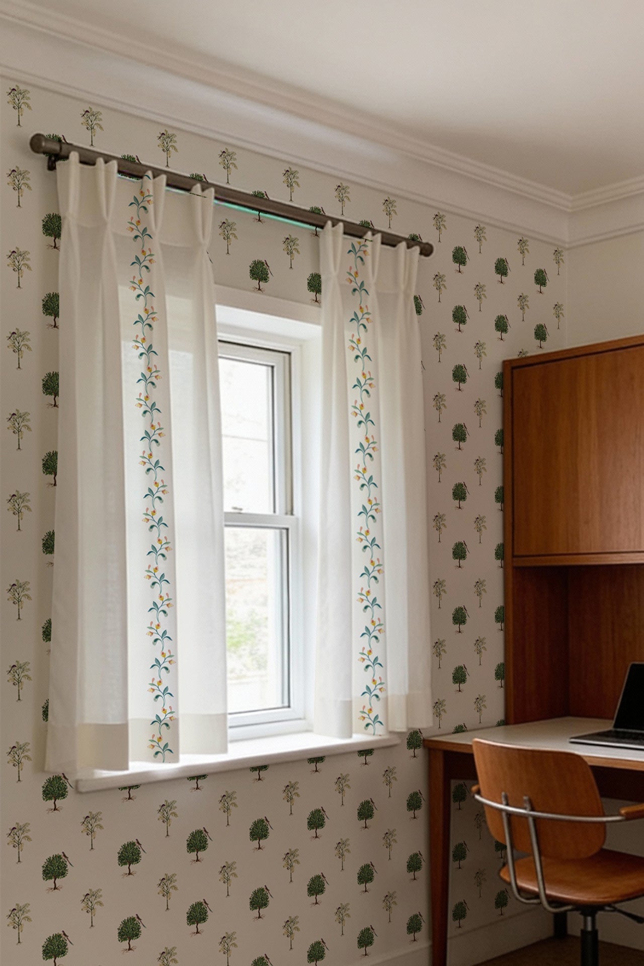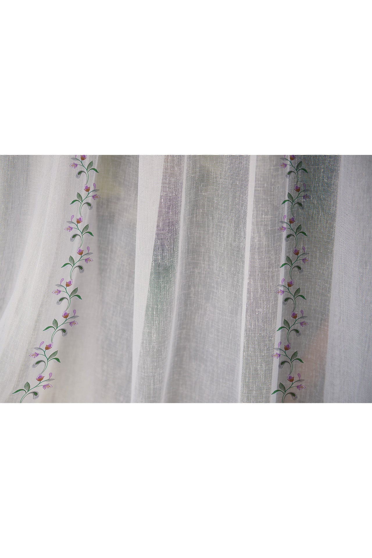 "Nothing enhances a space like the quiet elegance of floral patterns, and “Garlands of Bliss" sheer does just that. Crafted for those who love nature inspired decor, this piece adds a touch of whimsy while maintaining a refined aesthetic. Ideal for living room sheers, bedroom sheers or even a cosy cafe corner, its intricate design creates a warm and inviting atmosphere. Find your perfect sheers for sale at Kalakaari Haath, where every piece tells a story.