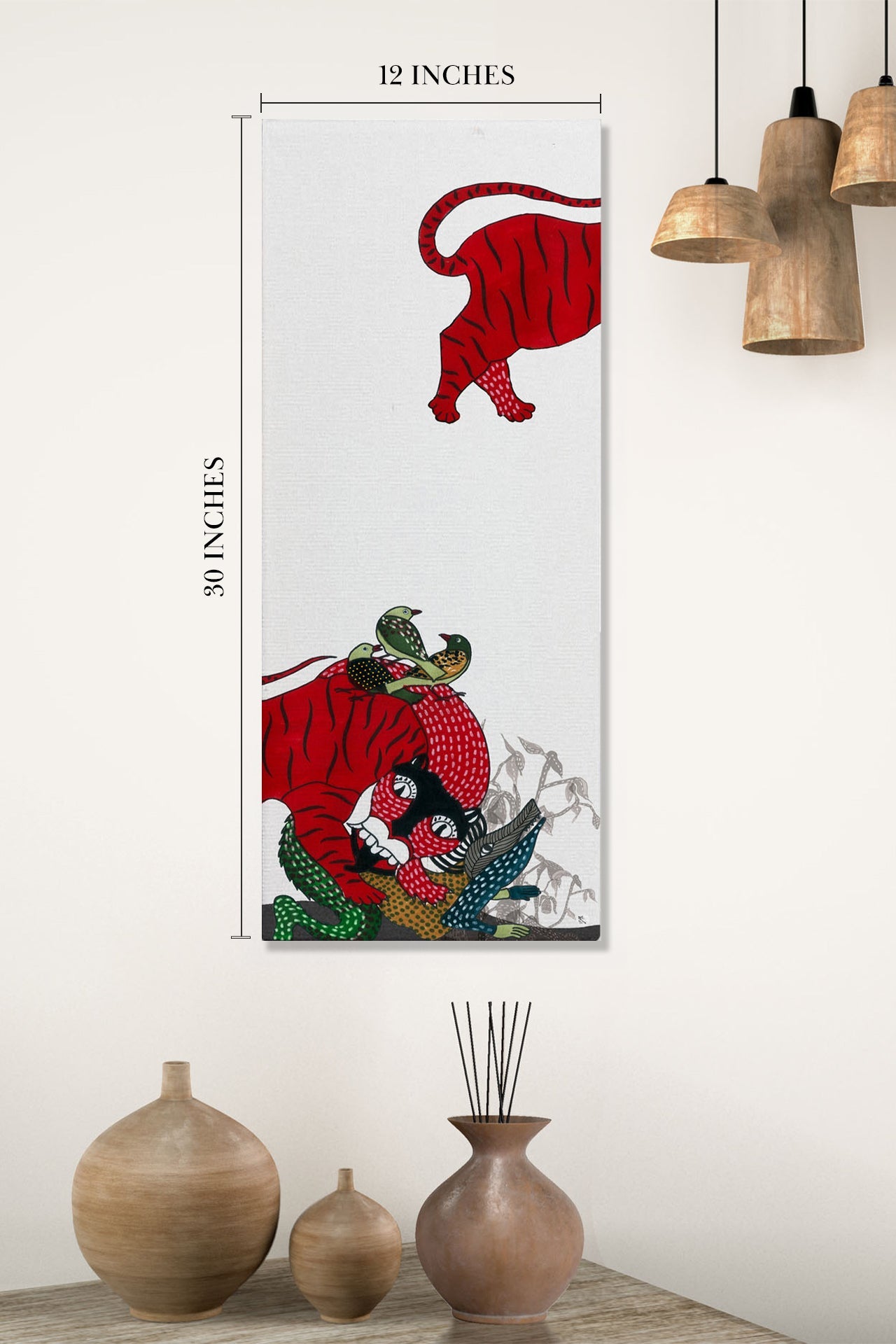 Invite a sense of playful movement into your home with our "Head And Body" canvas Wall Art. Inspired by Gond Art, one of the oldest and most revered tribal art forms in India, this piece brings together imaginative dots and lines to create a vibrant and dynamic composition. The clever use of lines gives the figures a sense of animation, as if they are ready to play and interact within the frame. Ideal for adding a touch of traditional artistry to your living room, office, or any space needing a spark of creativity. Buy this canvas art and celebrate the timeless beauty of Gond Art.