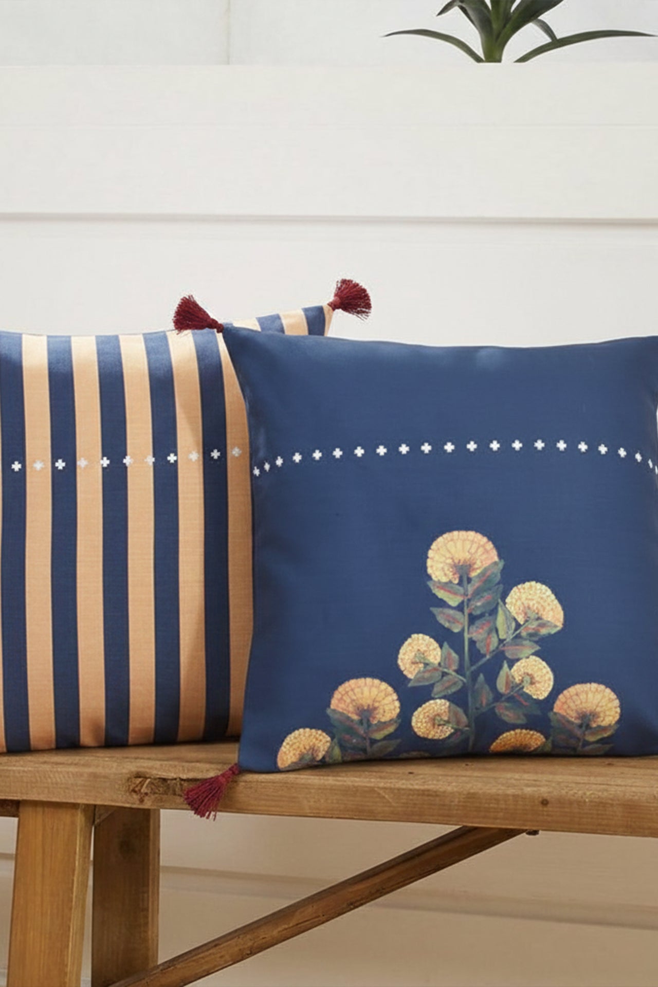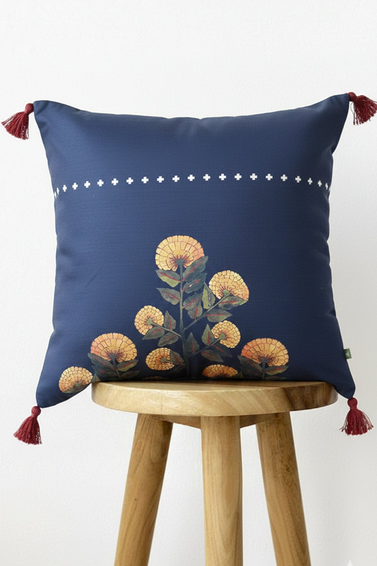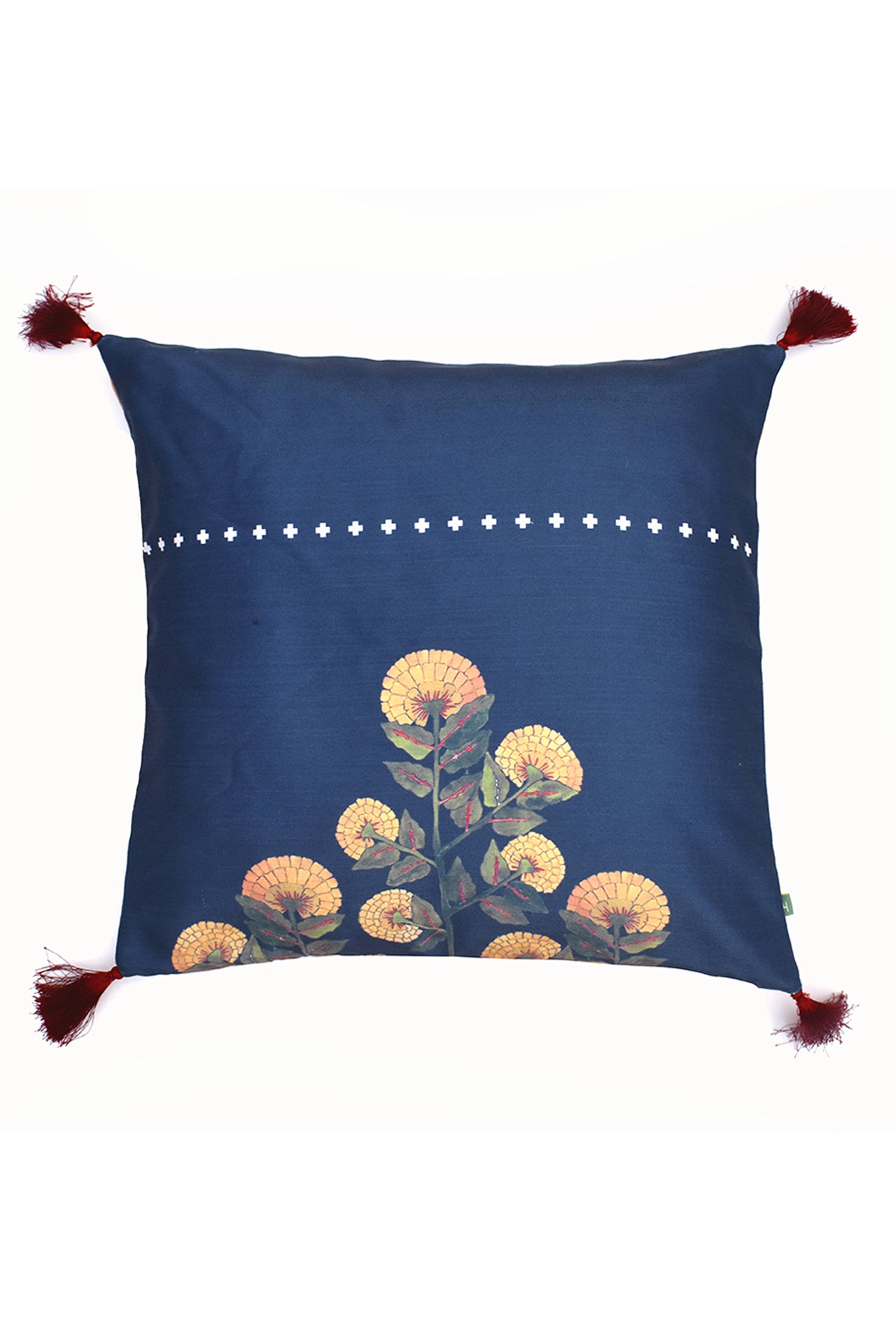 Transform your living space with the "Midnight Marigold" cushion cover, featuring hand-printed motifs now rendered in beautiful digital prints. This exquisite cushion cover captures the essence of marigolds in their glowing, growing bloom, adding a touch of elegance to any sofa or chair.