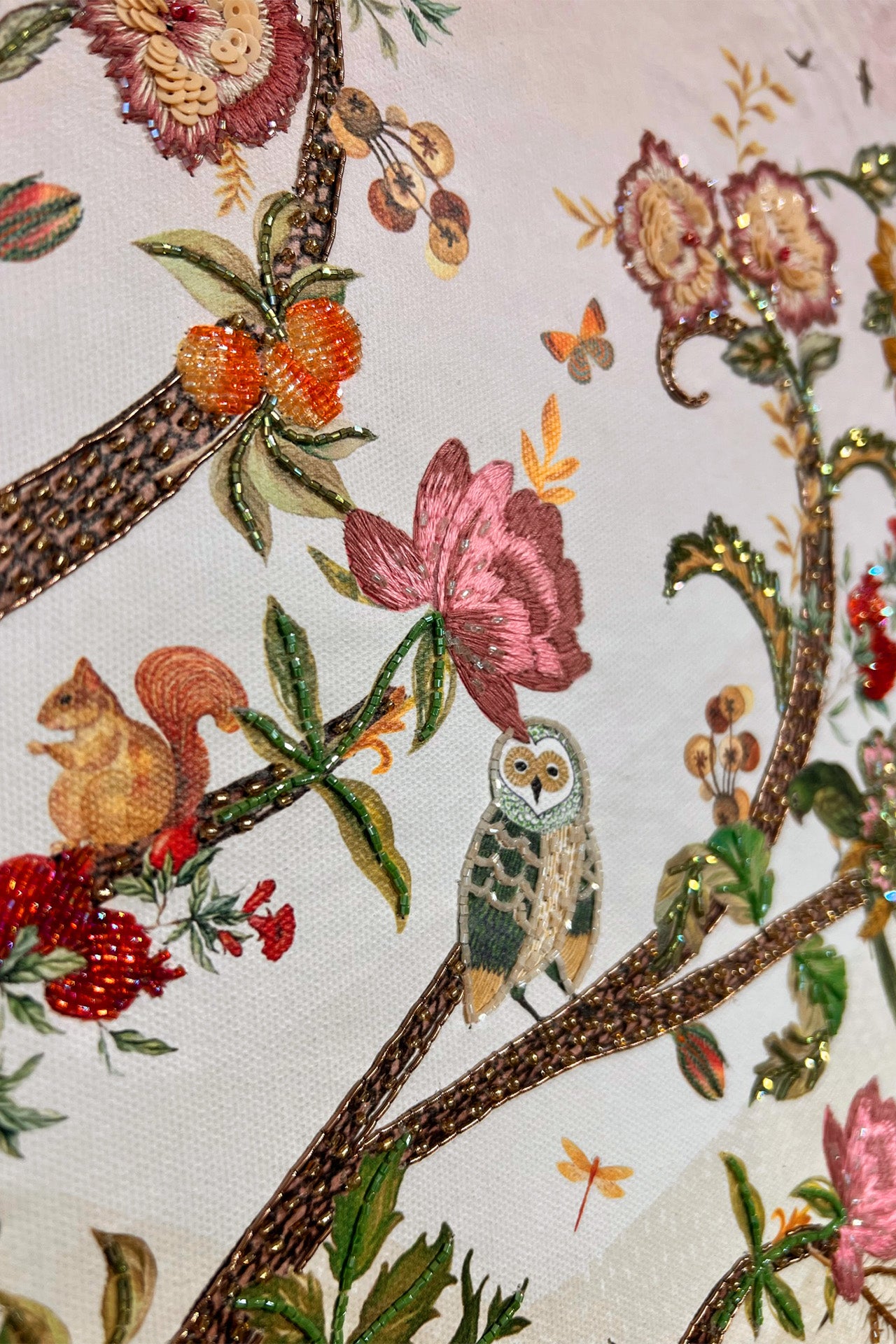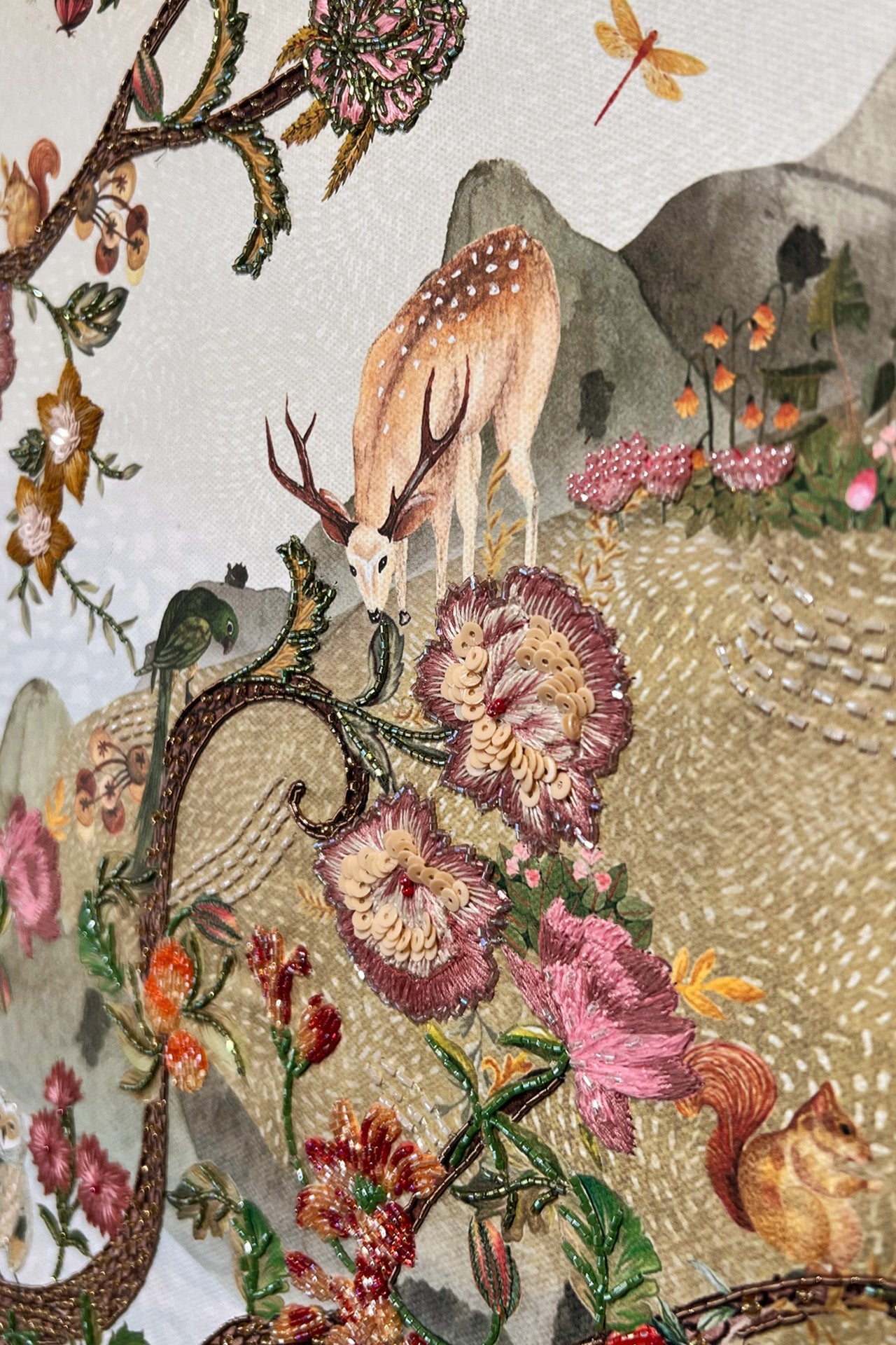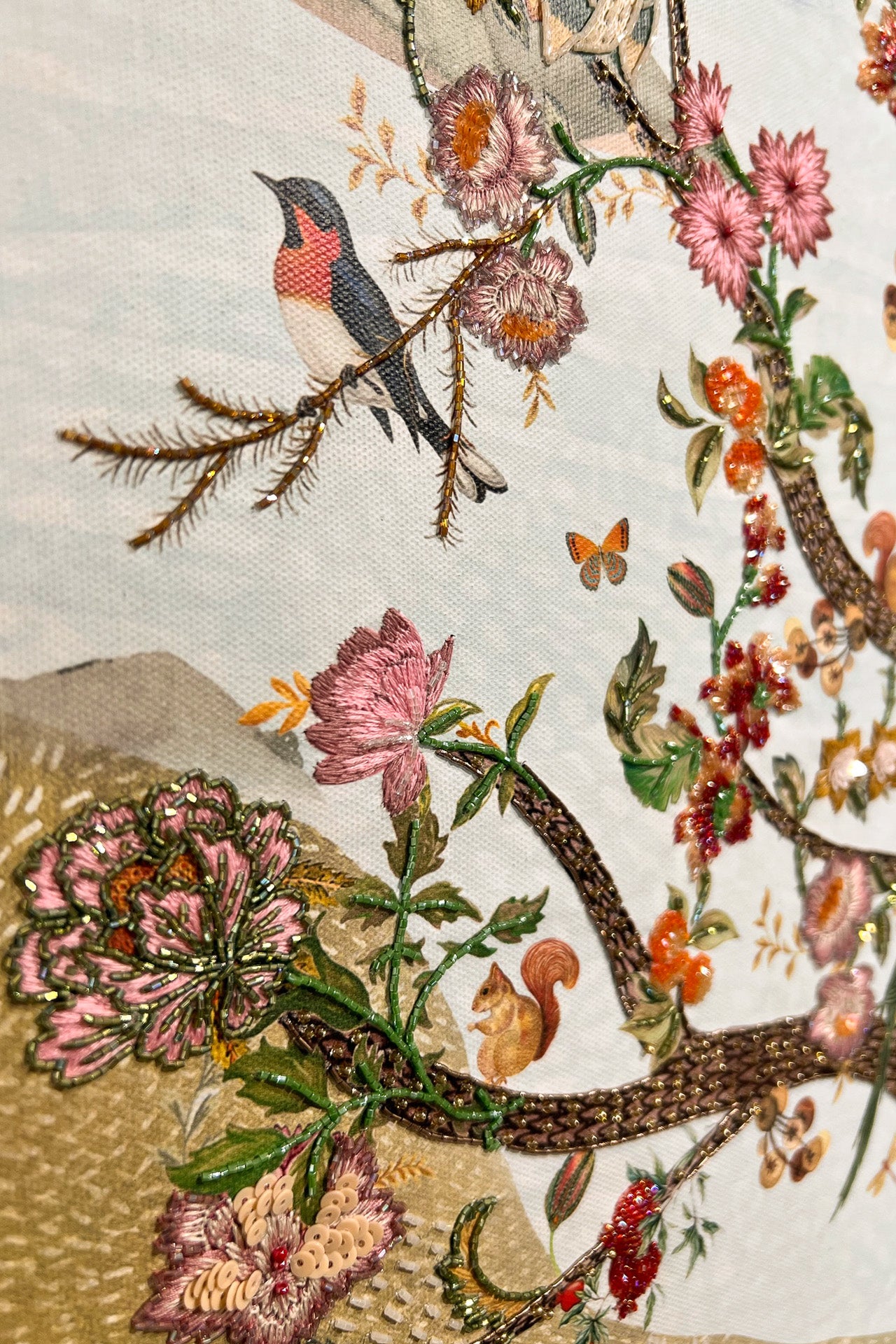 Canvas with beads, threads and embellishments